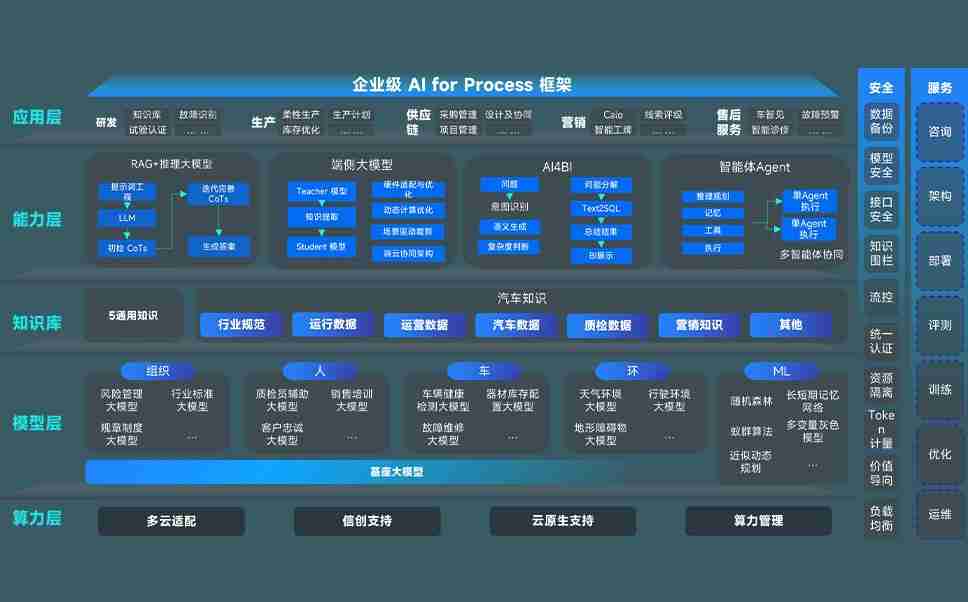 尊龙集团问学智车解决方案是一套基于AI技术的汽车行业智能化系统,,覆盖从底层算力到顶层AI应用的全栈方案。。。方案由算力层、、模型层和应用层组成:算力层,,方案支持多种一体机配置,,具备云端灵活部署、、、多云适配以及动态优化计算资源的能力;模型层,,,,尊龙集团问学平台版提供了企业级AI应用一站式构建与管理平台,,,,支持基于后训练强化技术的汽车企业专属模型的训练、、评测和运营;应用层,,尊龙集团问学DeepSeek版提供包括超级员工、、、智能招采、、、、智能营销、、、智能客服、、AI for BI等一系列解决方案,,可助力汽车行业实现数字化转型,,,让管理更智能、、响应更敏捷。。。